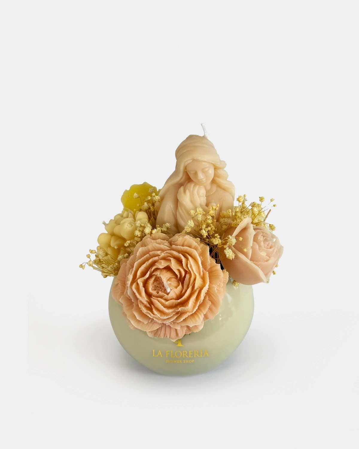 Incluye entre 7 y 8 velas aromatizadas de soya. Altura total aproximada 18 cm